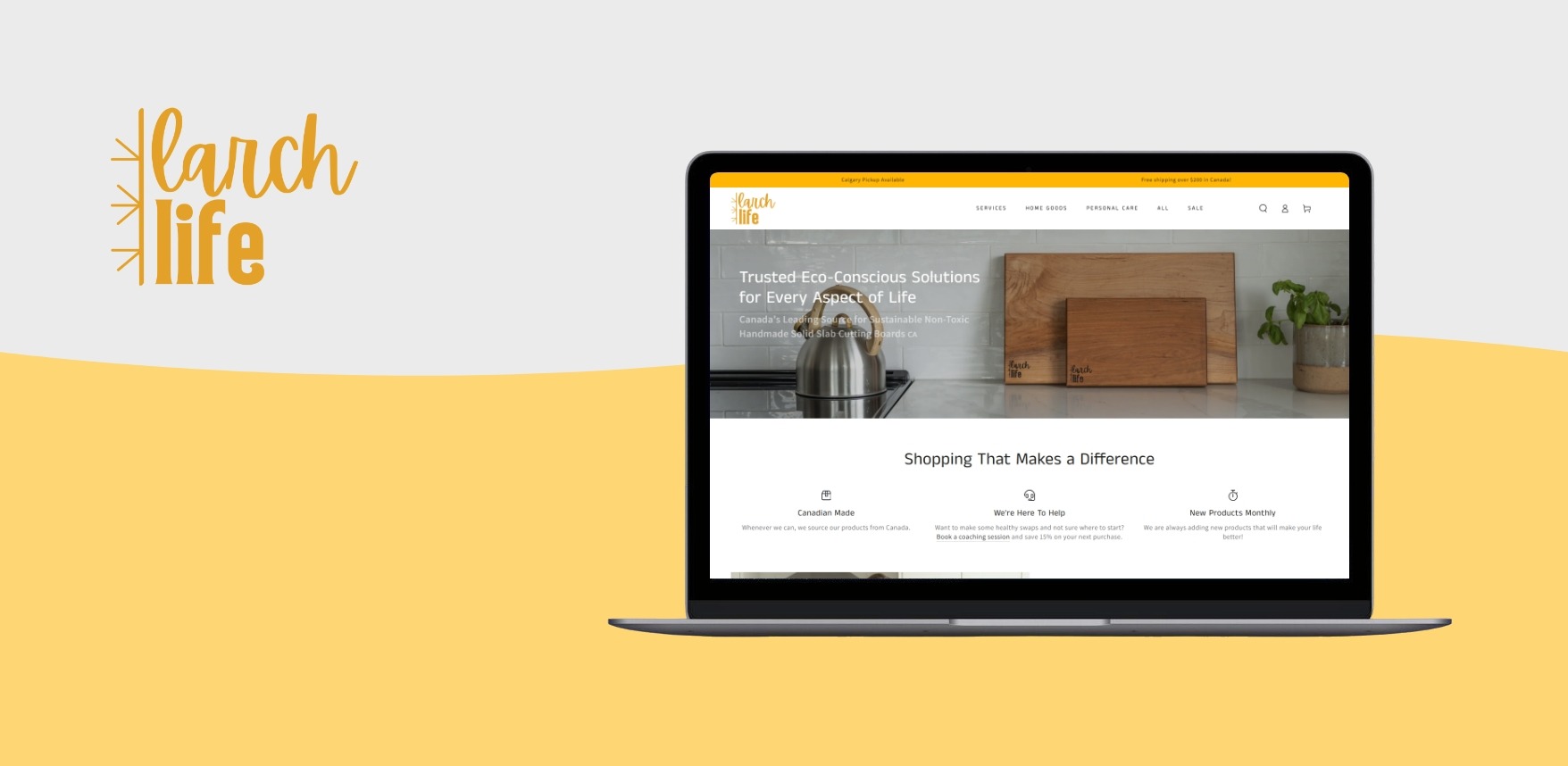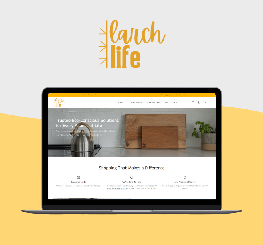 Larch Life is a Canada-based sustainability brand founded by Rowan Rocskar, focused on helping individuals make more environmentally responsible choices in everyday life. As a brand-new launch, Larch Life needed a Shopify website that could introduce its mission, sell eco-friendly household products, and offer virtual consultation services—all in one clear, approachable experience. The goal was to create a site that educates without overwhelming, sells without pressure, and feels personal rather than corporate.